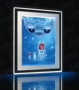 超薄水晶灯箱采用:水晶镜架,弧形镜架,外观精美;超薄,仅10mm厚;节能,与现有灯箱面积相同,节能85%以上;国产/进口优质导光板背光源使用,均匀美观,易于安装,更换方便。
