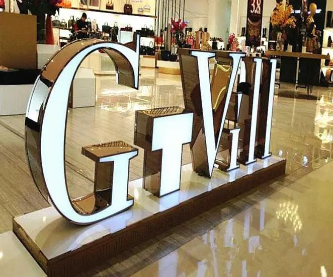 5.背光式LED发光字。此类发光字面板由拉丝不锈钢精工制作,字体显得刚劲有力,不仅简洁而且美观。光从字体边缘反射出来,璀璨迷人,质感强,适宜近距离暗环境。