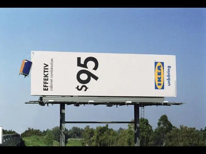服装名牌CalvinKlein并非依赖文字来表达,它选用黑白色广告牌,带出强烈对比,非常引人注目,肯定使目标人士在路过时留下深刻印象。由于CK这一招非常成功,结果引来其他零售业也纷纷跟风。