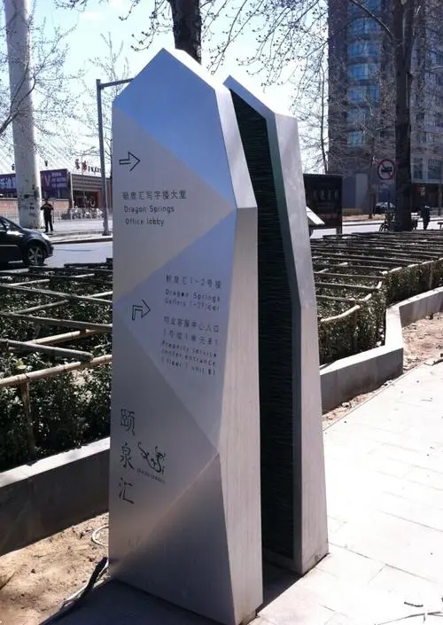 标识系统作为空间导向传递信息的重要部分,其设计不仅要针对使用对象状况,而且要兼顾区域特性。在考虑观者距离与空间特点的同时,要加入照明设计、绿化设计、雕塑设计等要素,四川华蔓广告有限公司综合运用多种要素构成多元化的标识导视系统,与整体建筑环境、人文的使用氛围相得益彰。因此,以下四大要素是标识导向系统设计不可忽略的元素。
